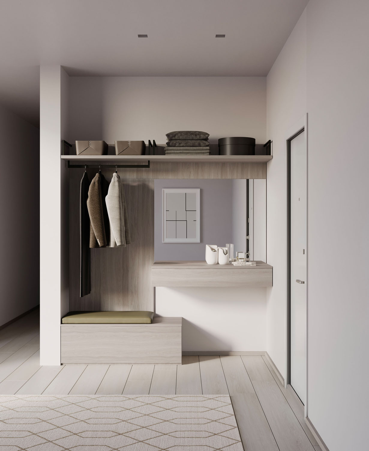 Every room in the house and every space can be furnished with modular furniture and components. These can range from ideas for living rooms and bedrooms to solutions for laundry rooms, below staircases and garages. All guided and inspired by the same style and design philosophy.