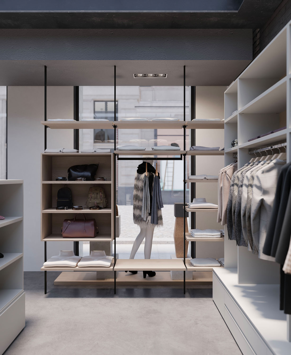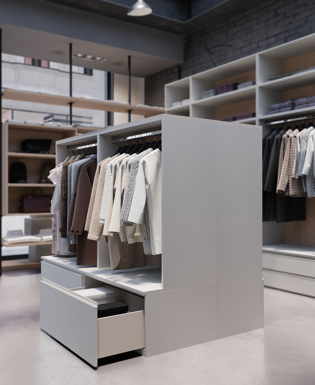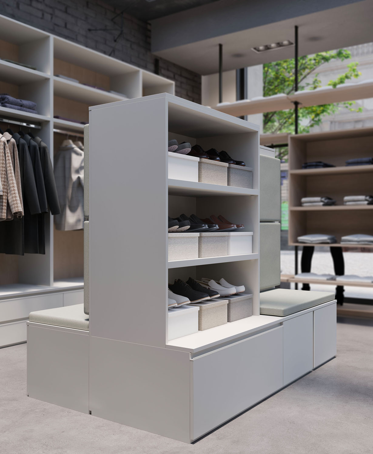 Furniture in a clothes store or boutique plays a key role in showcasing garments in a series of display and storage modules. Shop design is another aspect of communication.