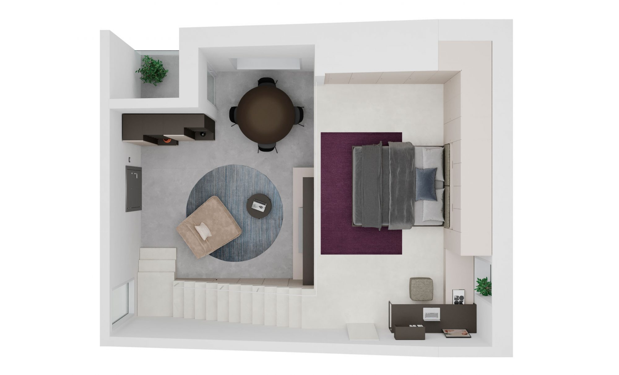 A new functional design approach for furnishing a duplex. Design continuity in all areas of the home, even when there are several levels. Extreme tailoring of dimensions and colour.