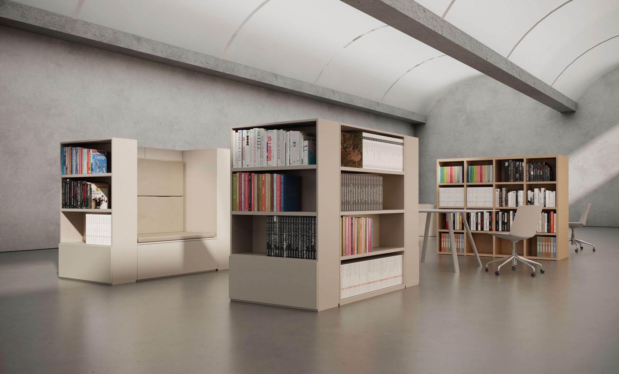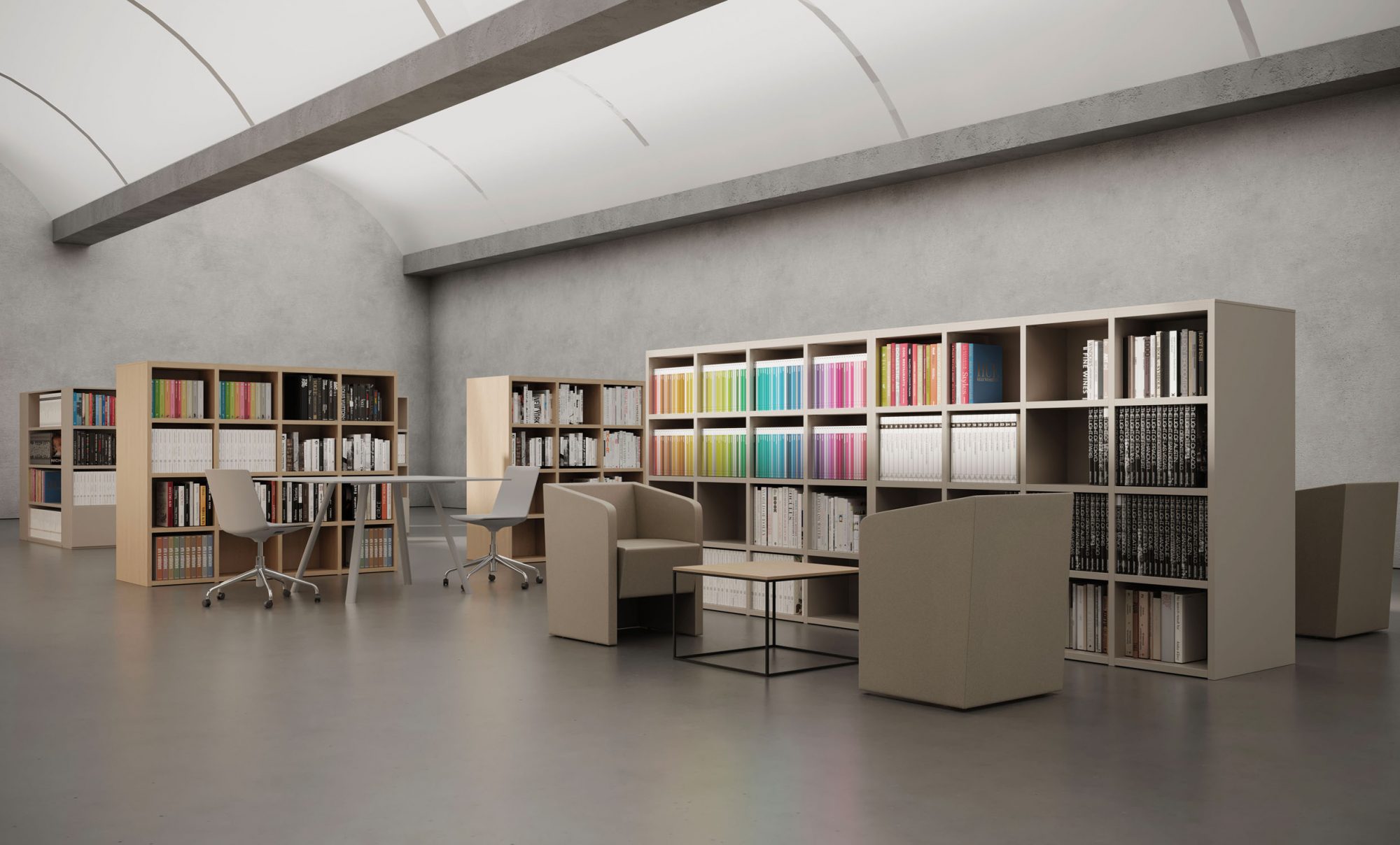 Design solutions for furnishing libraries. Modular furniture that can be customised and adapted to any space of any size.