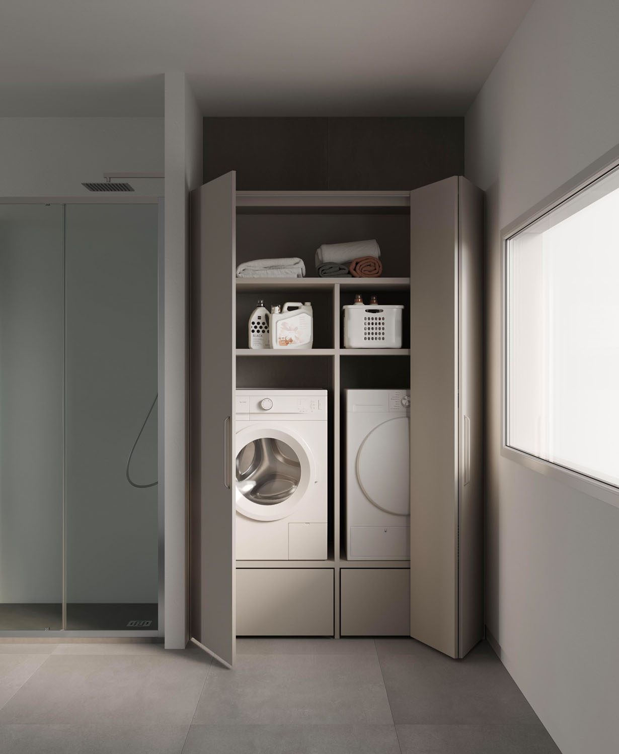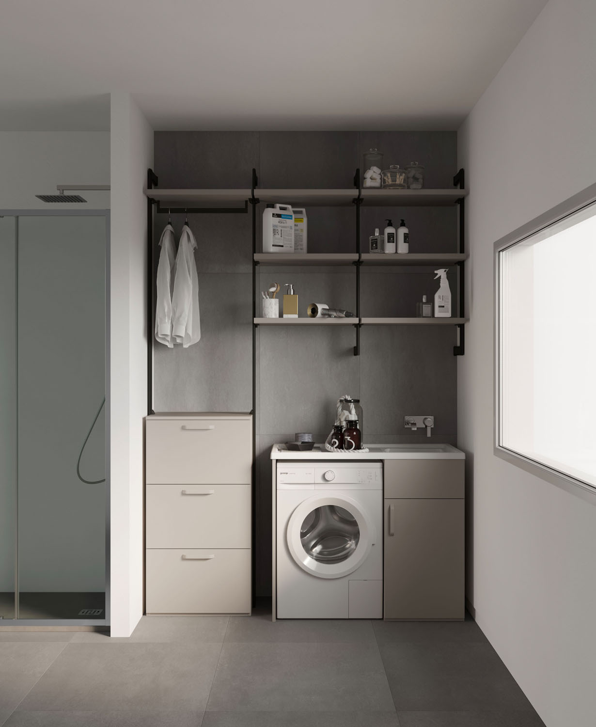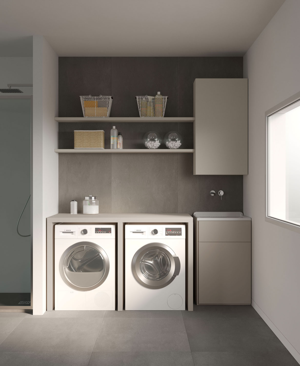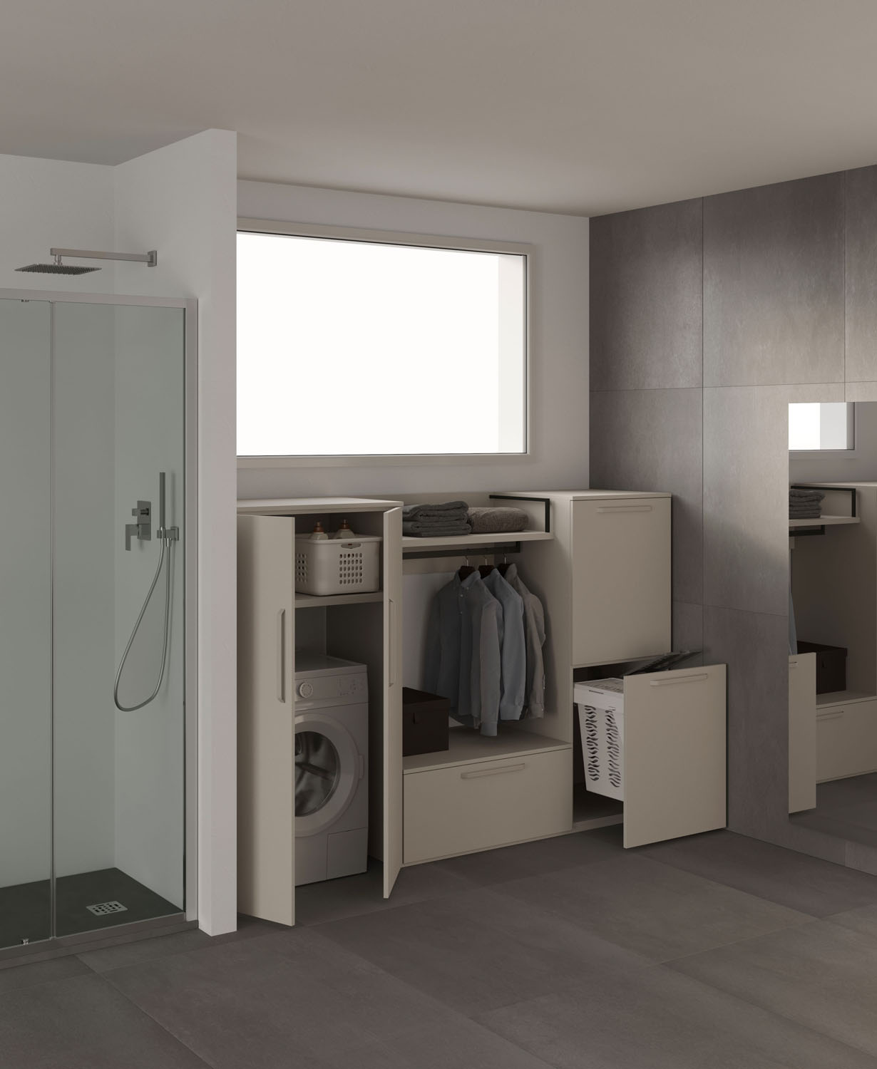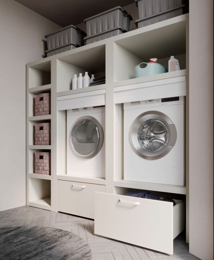 Practical, functional furniture for the bathroom-laundry. A pragmatic approach to the utility areas in the home.