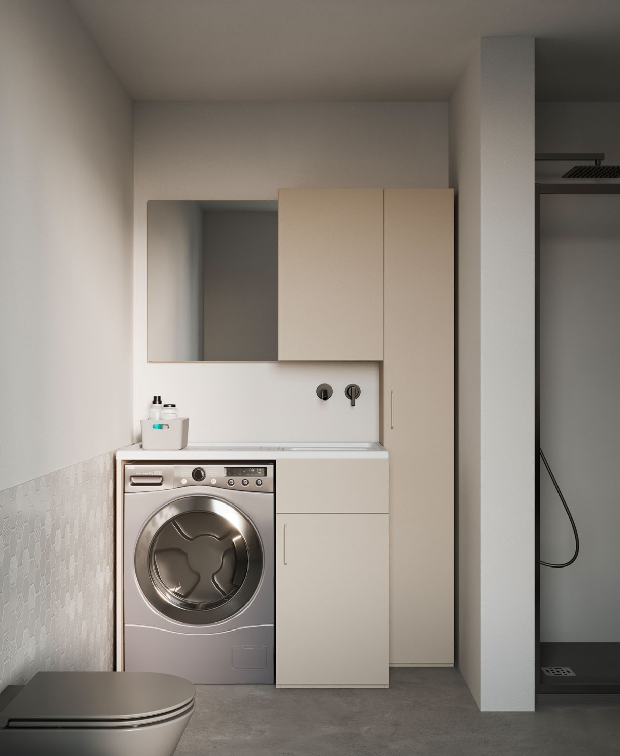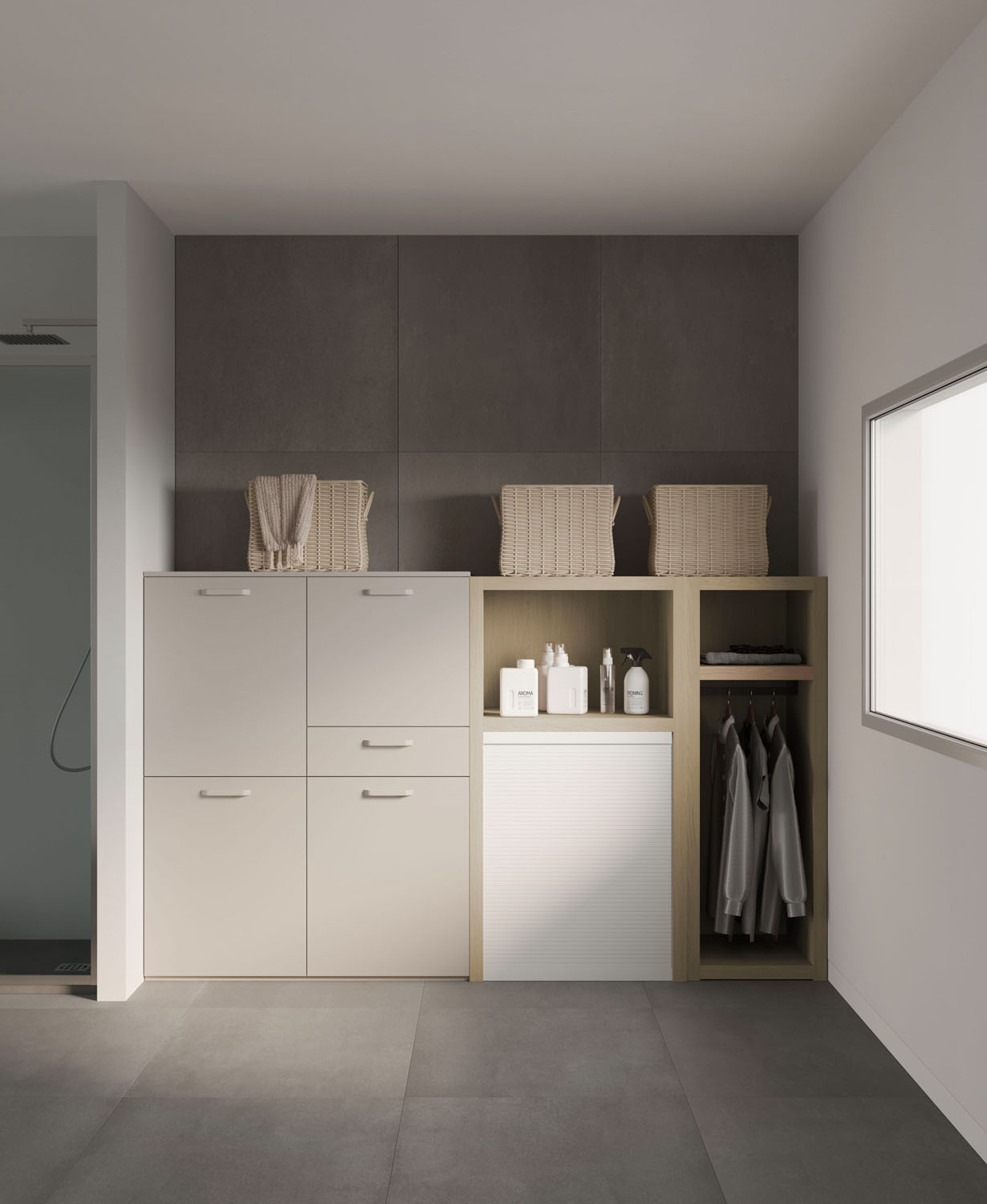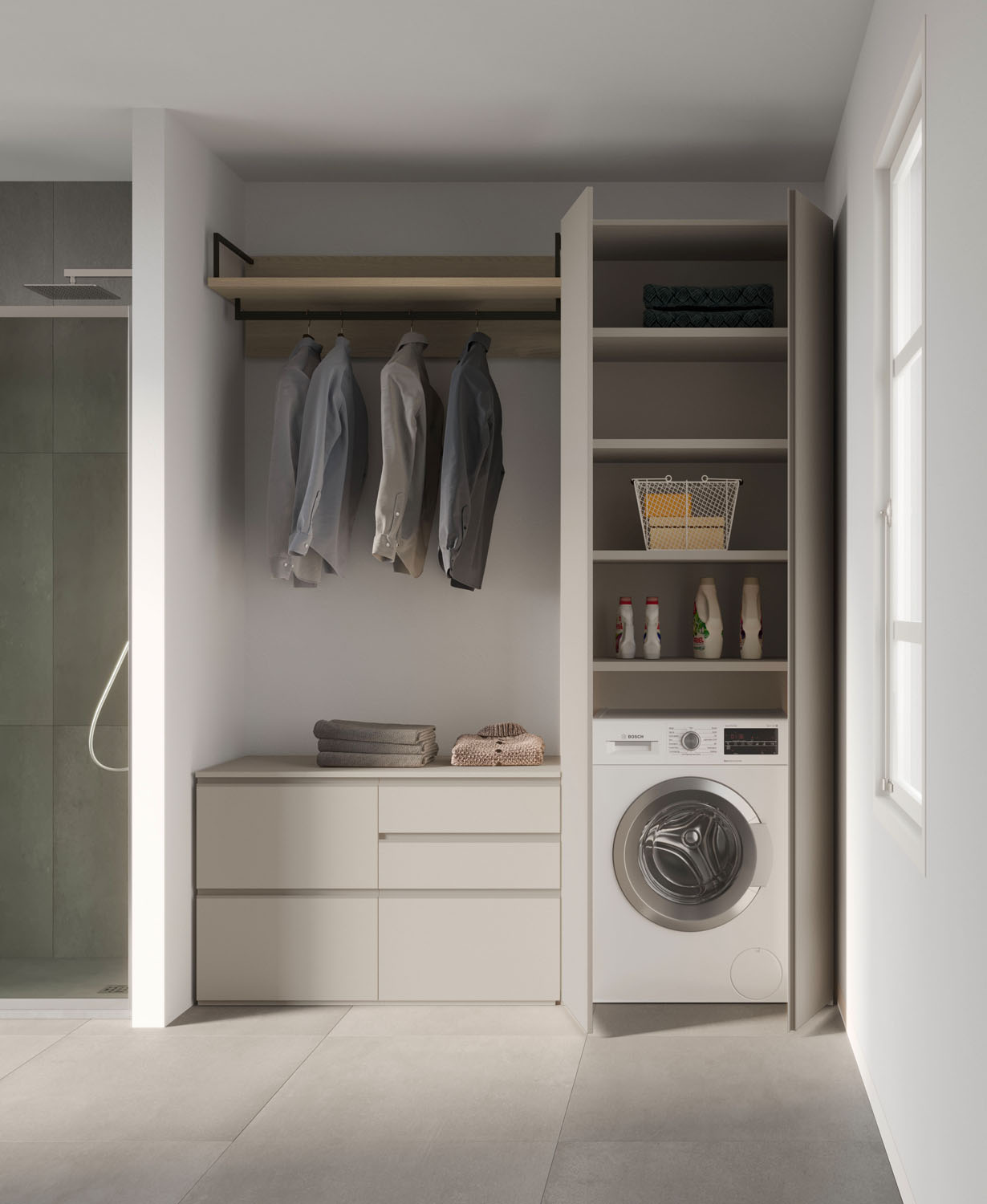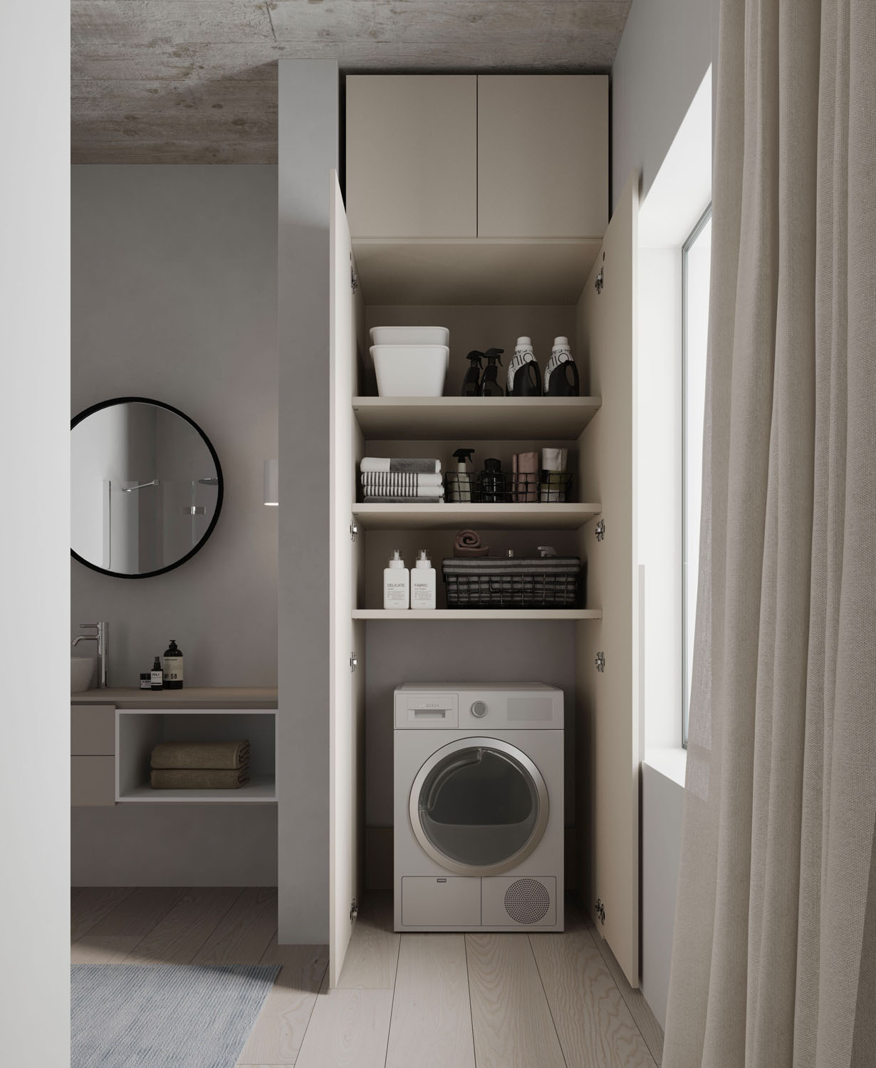 Practical, functional furniture for the bathroom-laundry. A pragmatic approach to the utility areas in the home.